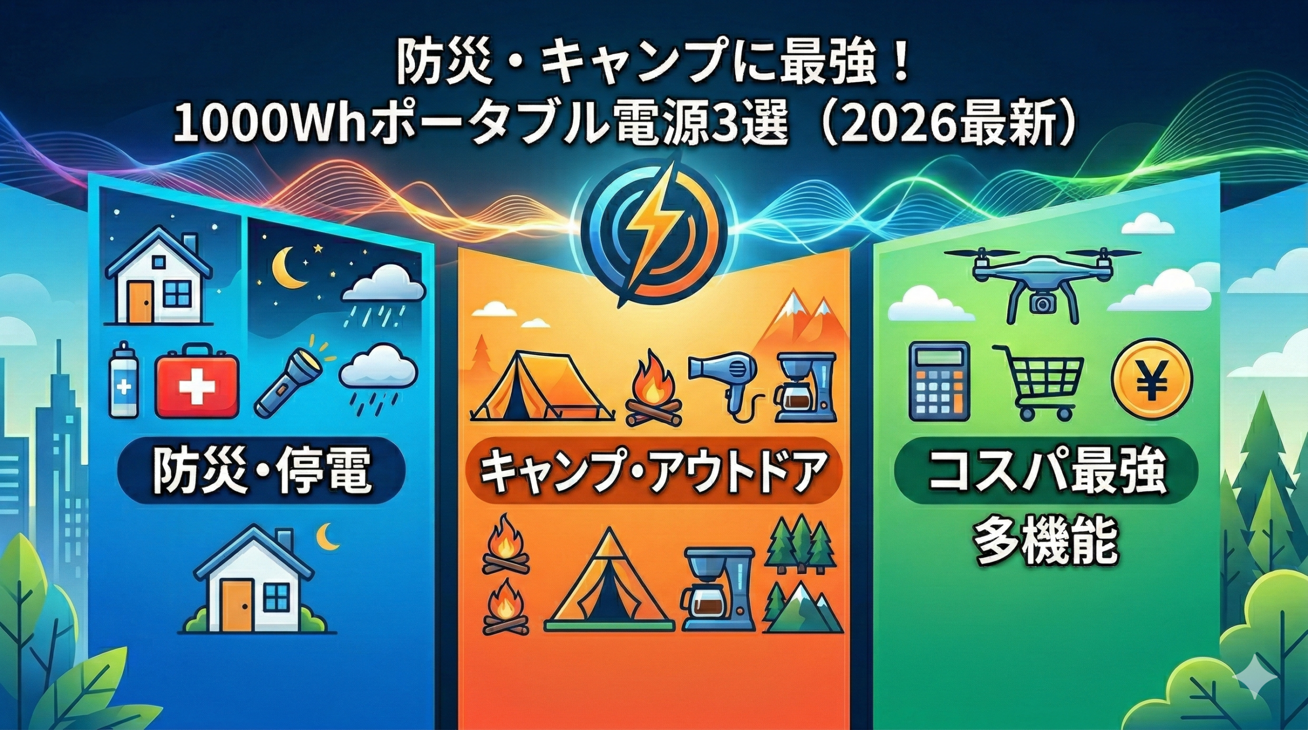 【2026年最新】ポータブル電源(1000Whクラス)徹底比較表